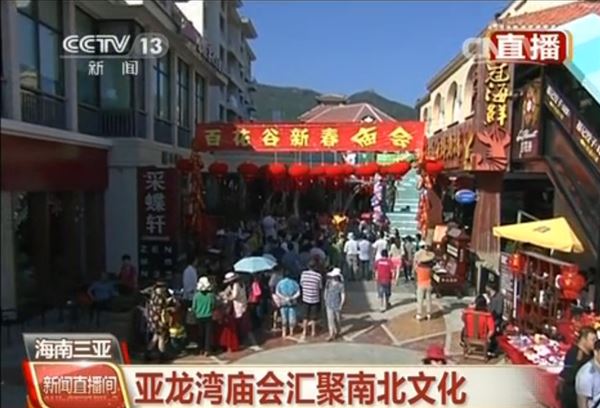 2月1日,農(nóng)歷正月初二,中央電視臺新聞頻道在三亞亞龍灣華宇百花谷對“三亞亞龍灣春節(jié)廟會”進行了直播報道。